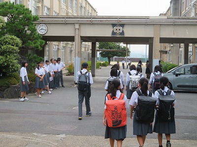 今日もまだ「暑い!!」といいつつ登校する生徒がいました。いつまでこの暑さは続くのでしょうか?