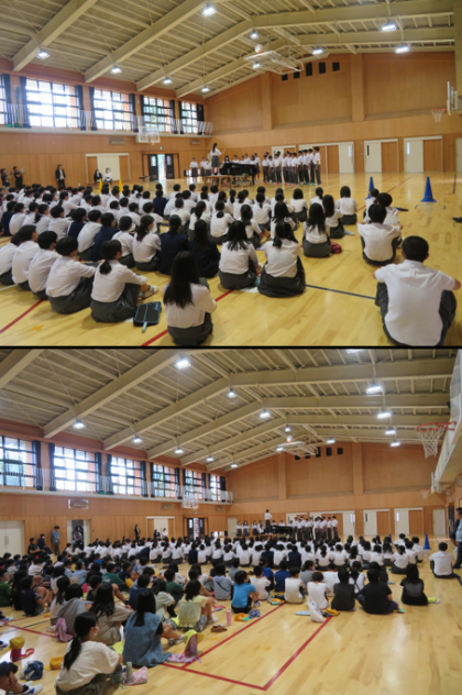 2年生が合唱コンクールのリハーサルを行いました。リハーサルには樫原小6年生の児童のみなさんが見に来てくれました。これから本番まで更に練習をして今日以上の合唱をしてくださいね。児童のみなさん、中学生の合唱はどうでしたか?