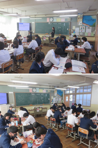 3年5組の道徳は、自己を見つめ、自己の良さに気づき、個性を伸ばして充実した生き方を追求することを目標に「ぼくにもこんな良いところがある」を読み、自分の良いところを出した後、グループやクラスの仲間の良いところについても見つめ、たくさん書きました。これからも自分や仲間の良いところをどんどん見つけてくださいね。