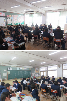 2年7組の道徳は、教科書の「私のせいじゃない」(公正・公平・相互理解)を行い、いじめについて考えました。様々な場面のイラストを見て、それぞれ具体的にどんなことができるか各自で考え、グループの仲間と考えを共有しました。