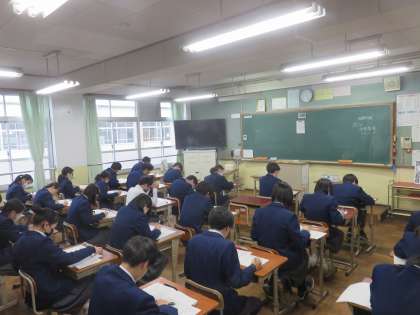 1組と3年生が定期テストの2日目を迎えました。どの教科のテストも時間いっぱいまで考え、最後の見直しまで頑張っていました。明日は最終日です。この後もしっかり準備をして明日のテストに臨んでください。