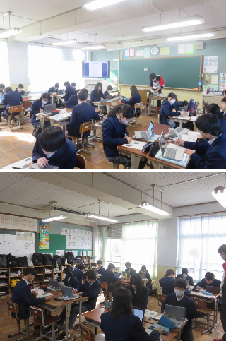 3年8組の理科は、衛星・小惑星・すい星・流星群についての知識を確認したあと、すい星の長くて美しい尾について何でできているか、どうしてできるのか等を各自で調べ、図を使ってワークシートにまとめました。