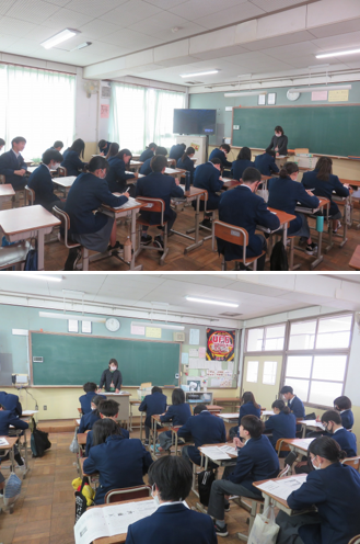 2年4組の家庭科は、定期テストの返却がありました。それぞれの問題について振り返りを行いました。帰ってからもう一度解き直しておいてください。