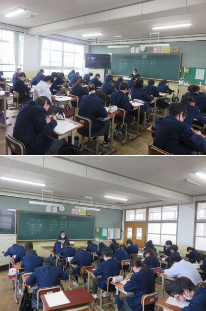 1年5組の数学は、これまでの単元内容のパフォーマンステストを行いました。授業で学んだ知識や、それを活用しての思考力・判断力・表現力を総動員して問題に取り組みました。この後の振り返りもしっかりしておいてください。