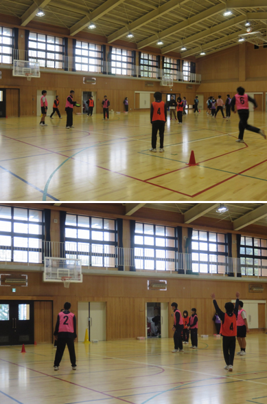 1組の保健体育は、体育館でアルティメットを行いました。チームの仲間と作戦を考え、うまくパスを回しながら活動を行いました。