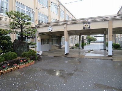 本日、雨天のため、新入生の受付は、北校舎と南校舎をつなぐ”渡り廊下”で行います