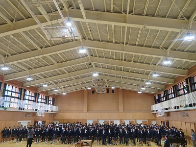 体育館を覗くと、2、3年生が青春メモリーズの練習に励んでいました。1年生の少しでも良い合唱を聞かせようと練習をしてくれていると聞き、とても嬉しくなりました。2、3年生のみなさん、ありがとうございました。