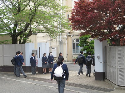 今日も早朝から生活委員のみなさんが校門で、登校する仲間を迎えてくれていました。