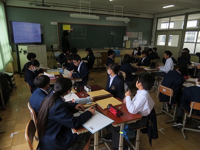 1年8組の数学を参観させてもらいました。今日の数学は学習形態3のパターンで行われていました。
