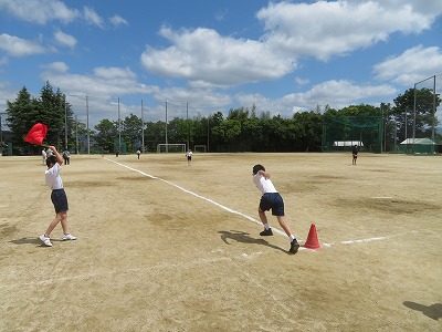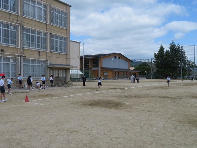 現在、体育の授業では、新体力テストに取り組んでいます(場所の関係で、クラスによって新体力テストの時間は異なります)。