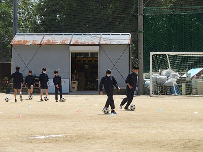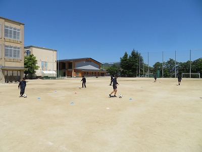 本日は、「基本的なボール操作することができるようになること」を目標にし、ペアでリフティングに取り組んだ後、パス、ドリブルの練習を行いました。