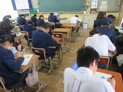 2年6組の理科の授業では、周期表の小テストが実施されていました。教えてもらったこと、また主体的に学んだことを活用して、考えること、探究することにつながげるためにも、周期表をしっかり理解しましょう。