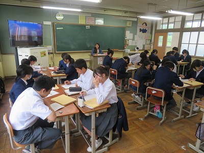 3年4組の教室を覗くと、一生懸命問題を解いているようでした。