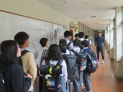1組は西総合支援学校に昨年採取したヒマワリの種を持って訪問しました。ヒマワリの種を手渡した後、西総合支援学校のフィールドワークと学習のようすを見学させてもらいました。