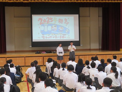 6限3年生は、体育館で修学旅行に向けた最終ミーティングを行いました。