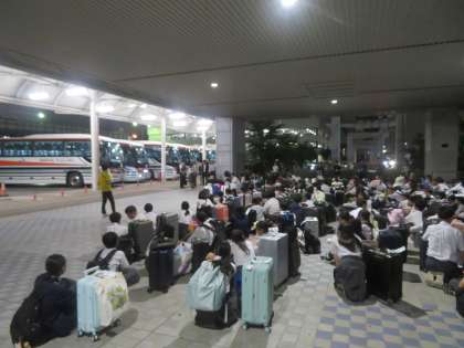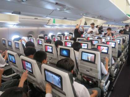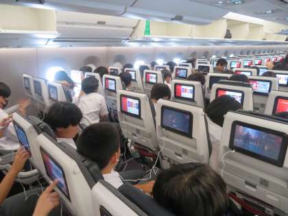 飛行機内での様子と解団式