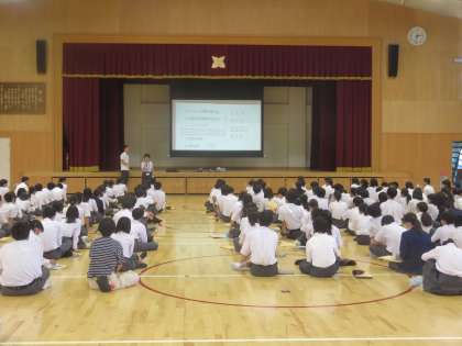 体育館では自分たちの学びについて