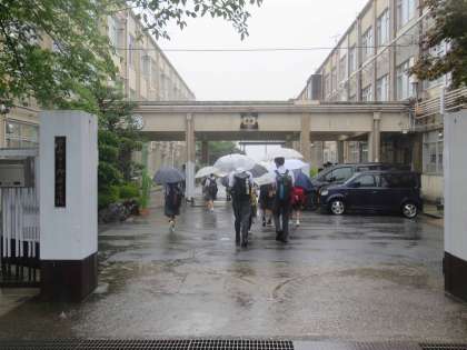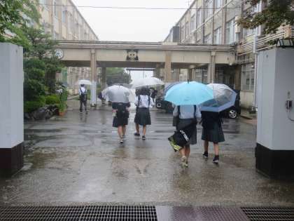 今日は朝から雨ですが、生徒たちは元気な挨拶で