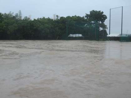 先日、改修していただいたグラウンドもしっかり水の