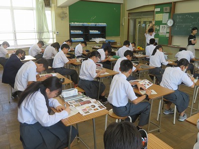 本日は、美術教室でデッサンの練習をしていました。教科書に掲載されているカラーの作品をしっかり「鑑賞」し、白と黒の濃淡で表すことに、大変集中して取り組んでいました。
