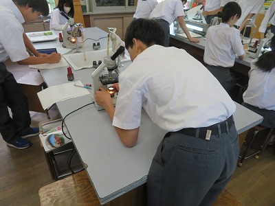 顕微鏡を覗きながらささやいた生徒のことばを先生が取り上げて、全ての生徒が考えるヒントにつなげるという場面がありました。生徒の小さなつぶやきを大切にする素敵な授業でした。