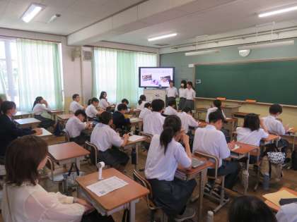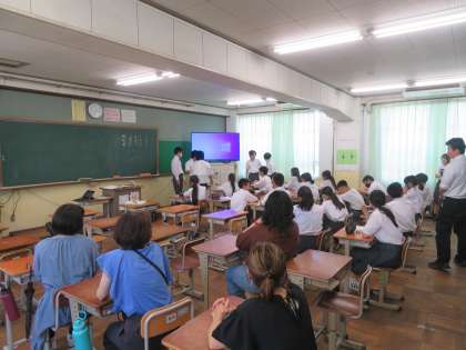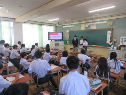 6月に実施をしましたチャレンジ学習(職場体験学習)に関する学習発表会を、1年生のみなさん、2年生の保護者の方に参加頂き、実施しました。