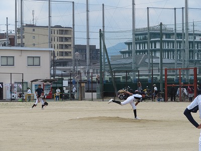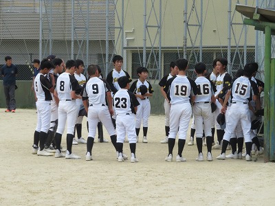 野球は南区の殿田グランドで嵯峨中学校と対戦をしました。先取点をとり、幸先のいいスタートとなりました。同点で迎えた終盤に3点を奪われ、残念ながら敗退となりました。