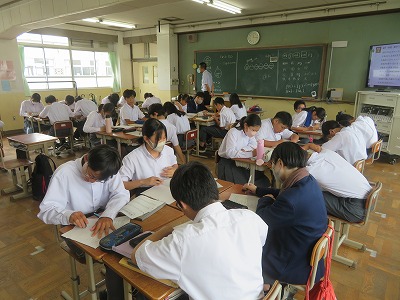 2年2組の数学は、これまで学習してきた連立方程式を活用して、所定の問題を解くことに取り組みました。