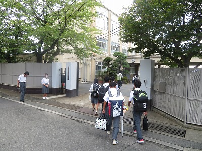 とても蒸し暑い朝となりました。生徒のみなさんも暑い、暑いと言いながら登校してきてくれました。残暑が続く毎日です。体調、特に熱中症対策を十分に行い、全力で学ぶ一日にしてください。