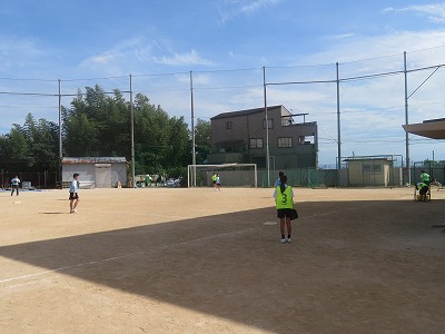 熱中症に十分注意しながら、グランドでソフトボールに取り組みました。