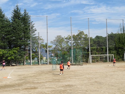 前時までに、ソフトボールのルール、キャッチボール、バッティングの練習を重ね、今日の授業では、ゲーム形式の練習に取り組みました。