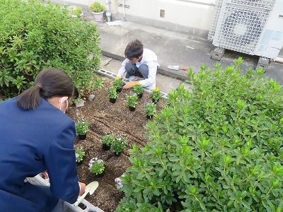 1組の生活の時間は、みんなでビオラの定植をしました。