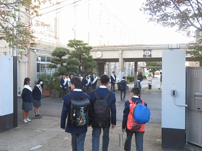13日の生徒会選挙立会演説会および投票に向けて、今朝も校門で選挙活動が行われました。