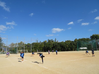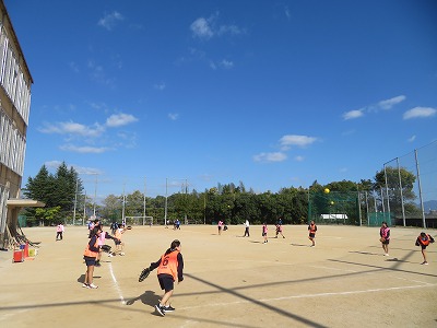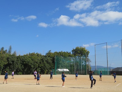 2年5組の体育は、グランドでソフトボールに挑戦しました。