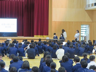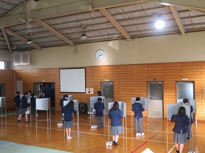 本日5・6時間目、生徒会本部役員選挙立会演説会および投票を実施しました。