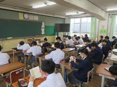 朝読書・朝学活時の教室のようすを参観させてもらいました。