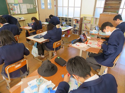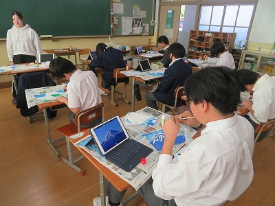 先生に聞くと、作成中の貼り絵は、展覧会に出すとのことです。生徒のみなさん、よい作品をつくりあげてくださいね。展覧会は必ず見に行きます。