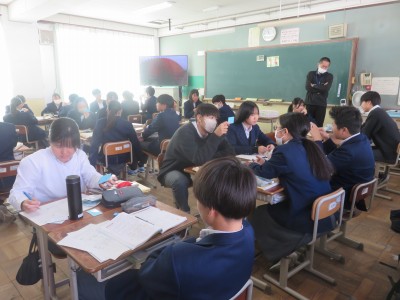 2人組になり身につけた会話文を実際に使えるように対話練習していました。