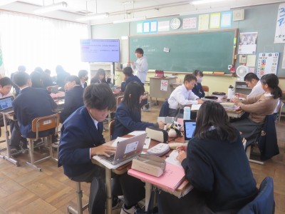 1年生の英語では現在進行形の疑問文について学んでいました。