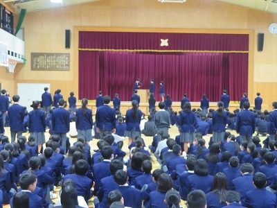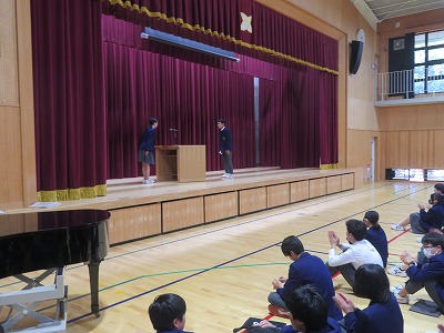 各学級の役員は、その場に起立をし、生徒会会員から大きな拍手で承認されました。