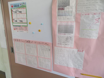 廊下には、授業で学習した内容に関する図書やジャンプ課題のレポート等が、掲示されていました。