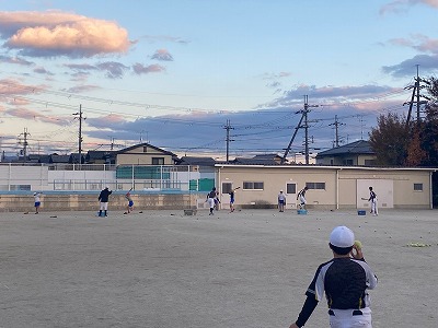 本日、樫原小学校の校庭で、樫原小学生と樫原中学校野球部の部員とで、野球に取り組みました。