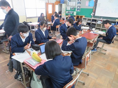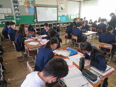 本時は、これまで学んだ内容が理解できているか、主に知識技能の観点の問題に挑戦し、確認をしました。