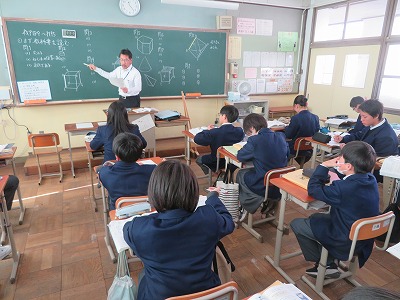 本時は、空間図形について学習をしました。「空間の直線や平面の位置関係を知ること」「空間図形を平面上に表し、平面状から空間図形の性質を見いだす」ことが出来るようになるよう、学びを深めました。