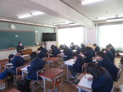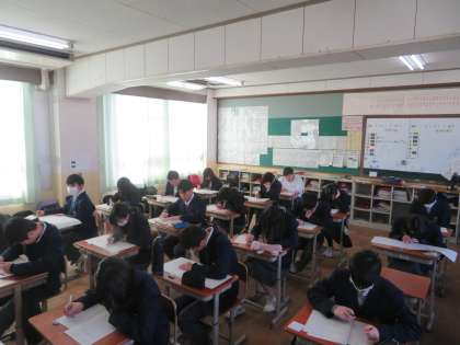 本時は、これまで学習してきた平行四辺形の性質を論理的に理解できているかについて、確認のテストを行いました。