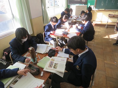 『君は「最後の晩餐を知っているか」/レオナルド・ダ・ヴィンチ作「最後の晩餐」の新しさ』をよく読んで、先生が示した読解の問題に取り組みました。
