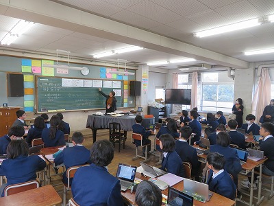 本時は、雅楽の鑑賞を通して、雅楽で使われる楽器の音のちがいを理解することとした学習でした。