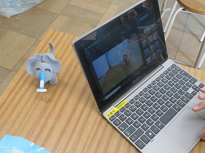 本時は、一人ひとりが紙粘土で制作したキャラクターを「学校にいる未知の生物を発見しよう」とテーマに、思い思いの場所にキャラクターを置き、写真撮影をしました。