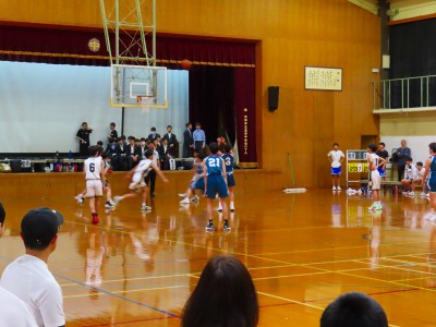 男子バスケットボール部の春季大会第一回戦はは嘉楽中学校との一戦です。14:20分に始まり、点数の取合いとなり第1ピリオドを13対8で終えややリードする。