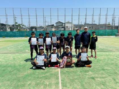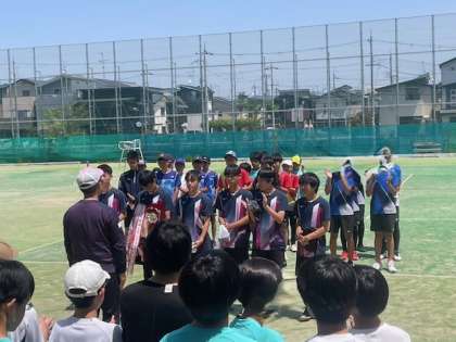 決勝戦の相手は、神川中でした。この試合も圧勝でした。この結果、男子ソフトテニス部の団体戦優勝が決まりました。堂々の優勝おめでとうございます!!